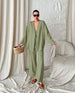 Bring Mediterranean chic straight into your wardrobe with the La Verde lounge set. This two-piece ensemble in a soft sage green combines comfort with elegance—ideal for warm summer days, the beach, or relaxed city looks.