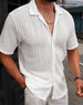 Make a bold statement with the "Black Structure" short-sleeved shirt that combines style and coolness. The deep black design is enhanced by a fine, textured weave that gives the shirt an exclusive and modern touch. The airy cut, combined with the open lapel collar, creates a casual summer feel—ideal for hot days or balmy nights.