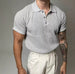 Discover the "Graumond" structured polo shirt – a masterpiece for style-conscious men who want to combine masculine elegance with summery lightness. The finely knitted fabric in a sophisticated shade of gray not only offers a modern texture, but its breathable structure also ensures a pleasantly cool feel – ideal for warm days and stylish appearances.
