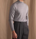 Perfectly paired with gray wool trousers, as pictured, this glossy black sweater ensures a stylish look – whether at the office, at dinner, or at special events. A must-have for any well-stocked man's wardrobe.