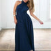 This stunning maxi dress combines timeless elegance with a touch of sensual sophistication. With its deep V-neck and open back, it skillfully showcases feminine curves and ensures an unforgettable appearance – whether at a summer party, a special event, or a romantic evening.