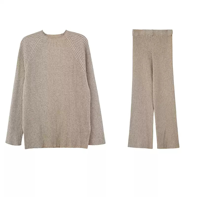 Das Set besteht aus einem hochwertigen, fein gestrickten Pullover und einer passenden Wide-Leg Hose, die zusammen ein harmonisches und edles Gesamtbild ergeben. Der Pullover präsentiert sich in einem klassischen Design, das subtilen Luxus ausstrahlt und sich wunderbar auf der Haut anfühlt. Seine Passform ist so konzipiert, dass sie sowohl stilvoll als auch komfortabel ist.