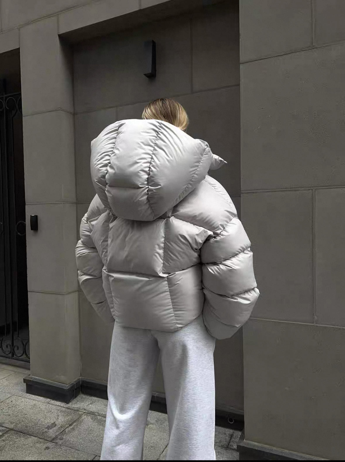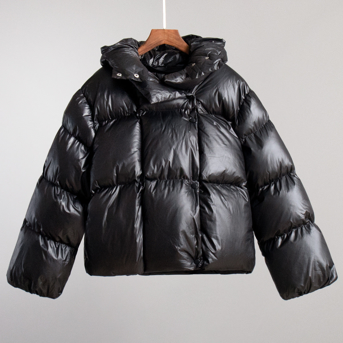 Diese hochwertige, kurz geschnittene Daunenjacke kombiniert urbanen Street-Style mit eleganter Winter-Performance. Das glänzende Obermaterial aus 100 % Polyesterfaser sorgt für einen modernen, leicht reflektierenden Look, während die dicke Steppfüllung (1000 g) zuverlässig vor Kälte schützt.