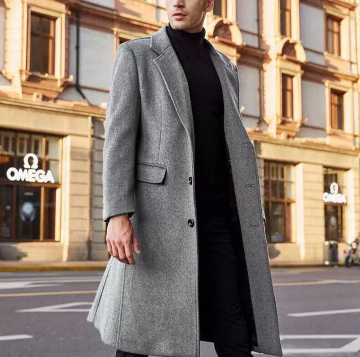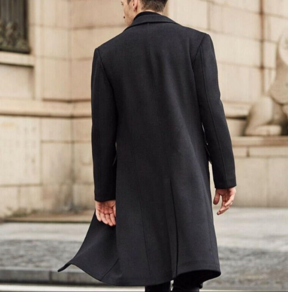 Eleganz trifft Großstadtflair: Der Urbane Schatten ist mehr als nur ein Mantel – er ist ein Statement. Dieser klassische Herren-Wollmantel in tiefem Schwarz vereint zeitlose Raffinesse mit moderner Schnittführung. Das klare Design mit Reverskragen, verdeckter Knopfleiste und schlanker Silhouette sorgt für eine markante Erscheinung – ob auf dem Weg ins Büro oder beim abendlichen Ausgehen.