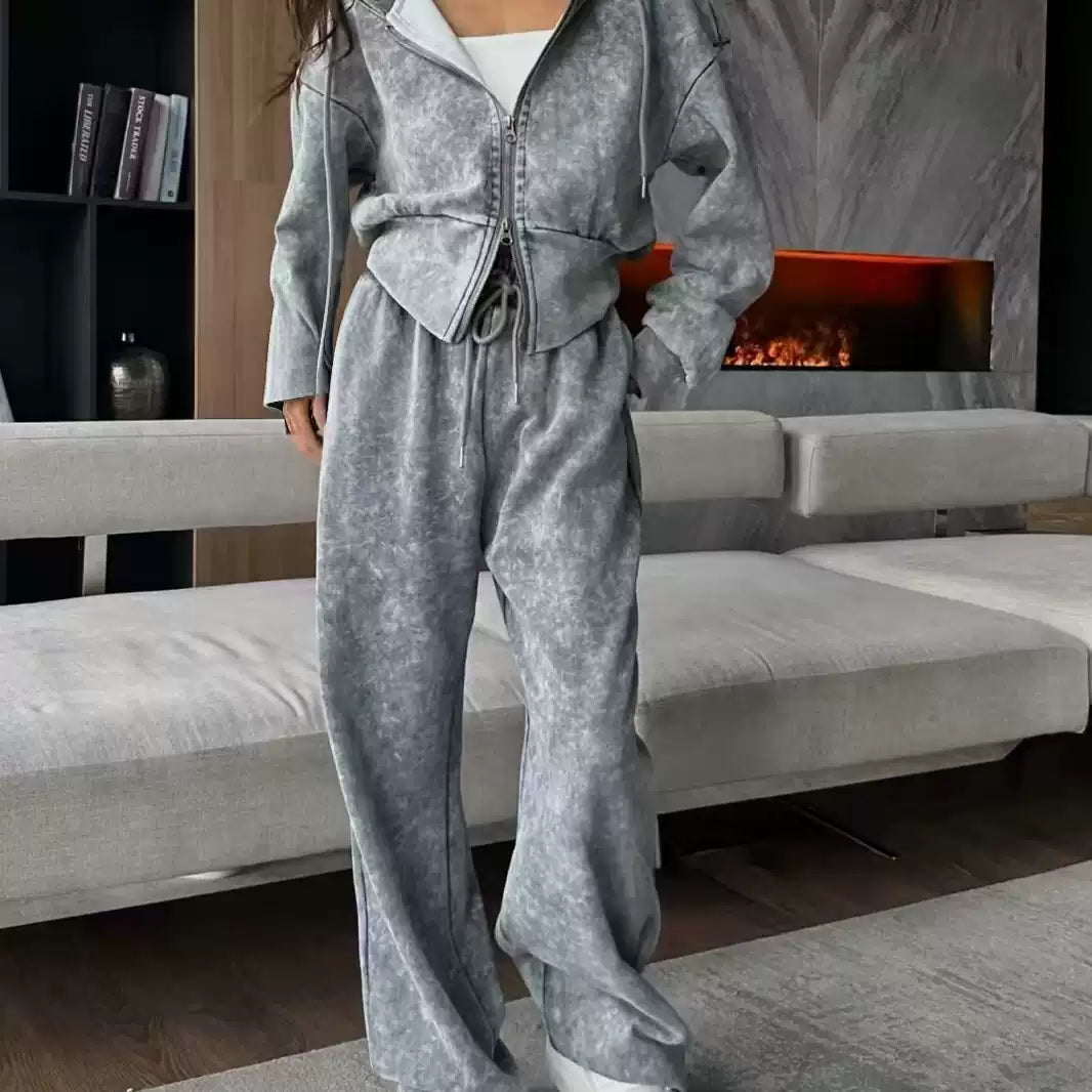 Dieses zweiteilige Set, bestehend aus einem stylischen Kapuzenpullover und einer bequemen Jogginghose, verkörpert den perfekten Mix aus entspanntem Komfort und trendigem Design. Inspiriert von aktuellen Strömungen der europäischen und amerikanischen Mode, bietet dieser Anzug eine ideale Lösung für alle, die Wert auf einen lässigen und gleichzeitig modischen Auftritt legen.