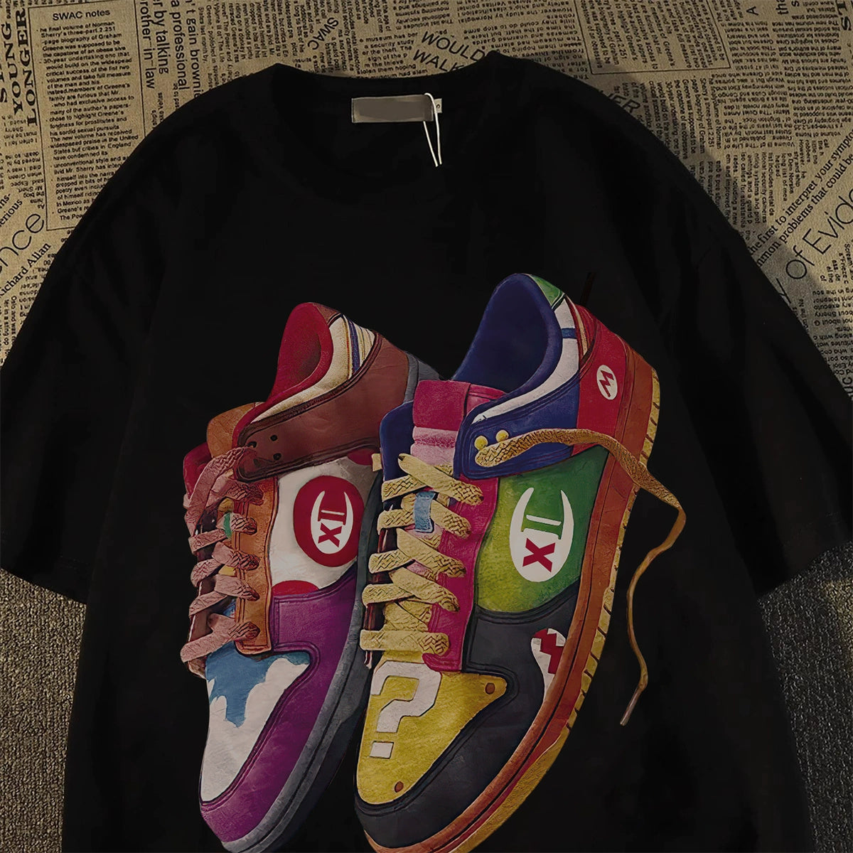 Bring Humor in deinen Look – mit dem witzigen Schuh-Motiv T-Shirt aus 100 % Baumwolle! Dieses Unisex-Shirt ist ein echter Hingucker für alle, die Streetwear mit Charakter lieben: