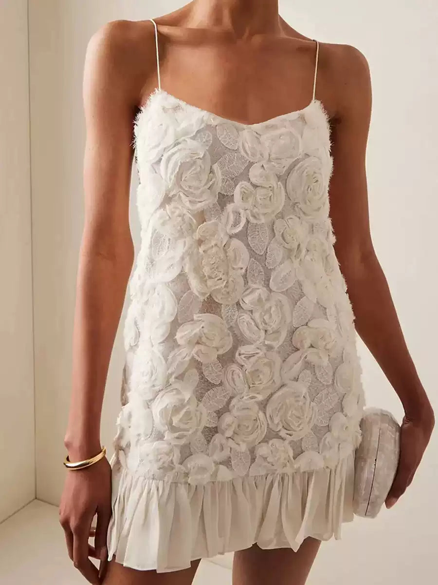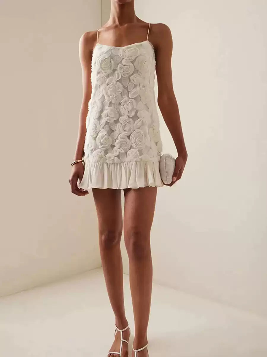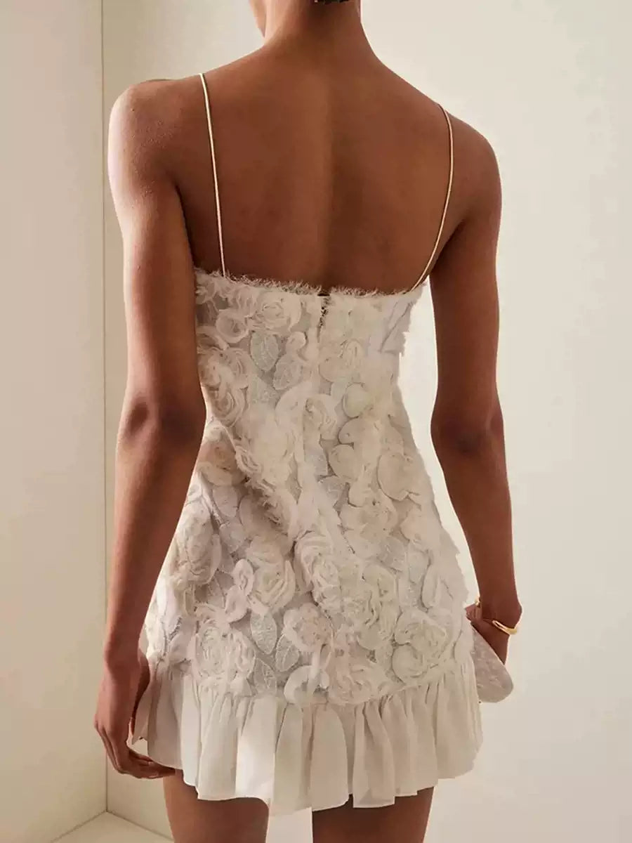 Verzaubere mit romantischem Charme – im französischen Goddess-Stil! Dieses kurze Trägerkleid kombiniert verspielte Eleganz mit sommerlicher Leichtigkeit: