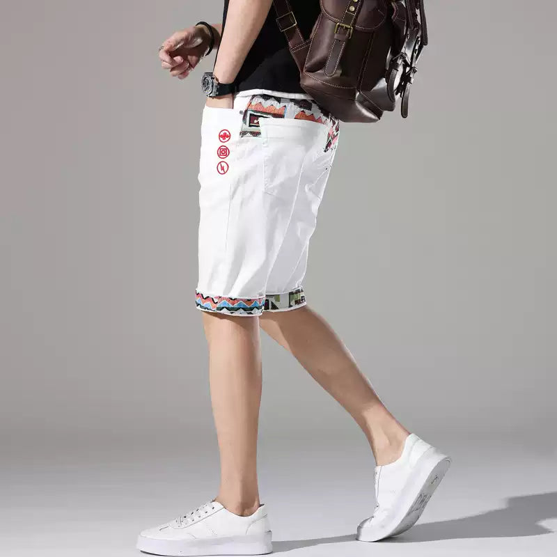 Verleihen Sie Ihrem Sommer-Outfit eine frische Note mit den weißen, bestickten Denim-Shorts für Herren – ideal für stylische Auftritte bei warmem Wetter! Diese halblangen Slim-Fit Shorts verbinden Komfort mit trendigem Streetstyle:
