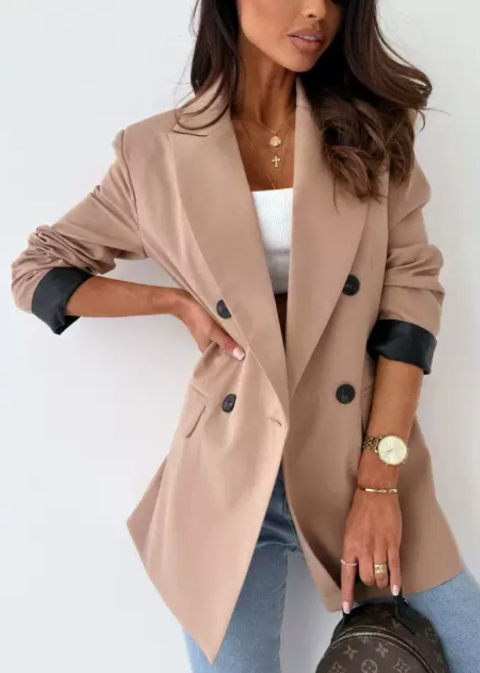 Style-Tipp: Kombiniere „Sienna“ mit einem weißen Crop-Top und High-Waist-Jeans für einen urbanen Chic-Look oder mit einer eleganten Hose für ein souveränes Business-Outfit.