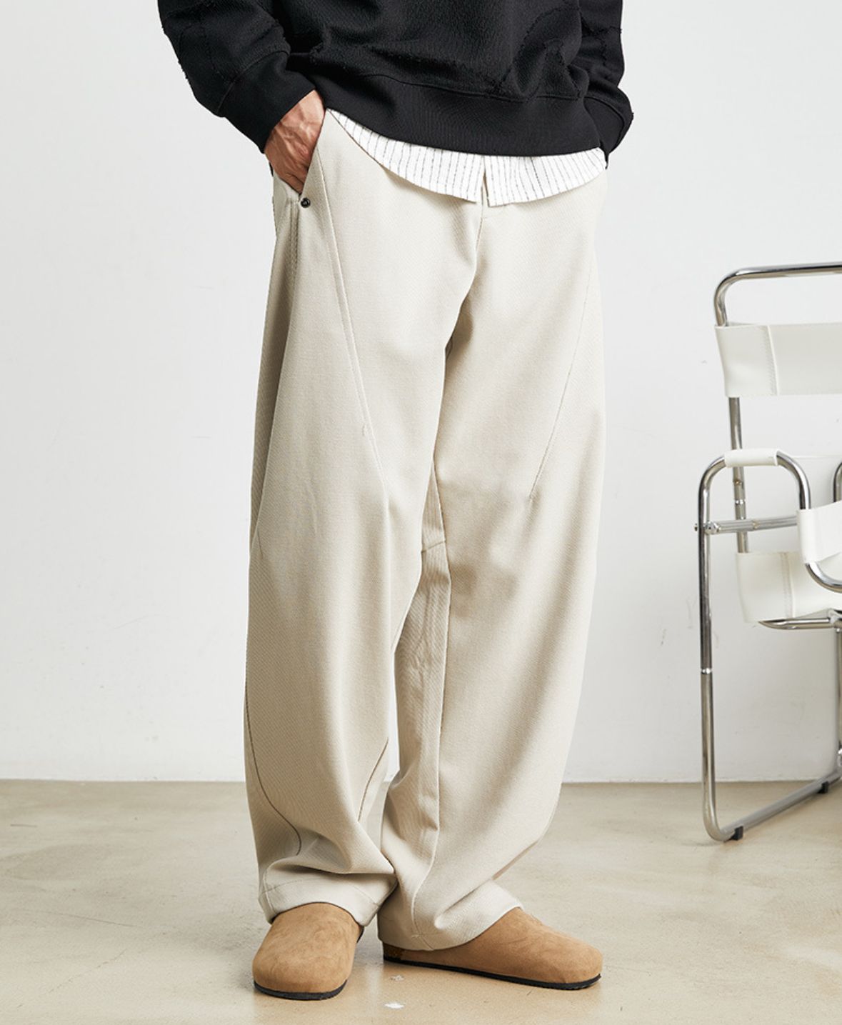 Entdecke den ultimativen Komfort mit unserer UrbanEase Jogger – der perfekten Fusion aus Lässigkeit und Stil. Die weite Passform, der dezente Beige-Ton und das markante Nahtdesign verleihen dieser Hose einen modernen Streetwear-Look, der gleichzeitig entspannt und stilbewusst wirkt. Der elastische Bund mit Kordelzug sorgt für optimalen Sitz, während das hochwertige Material ein angenehmes Tragegefühl garantiert – ob zu Hause, beim Spaziergang oder im Café.