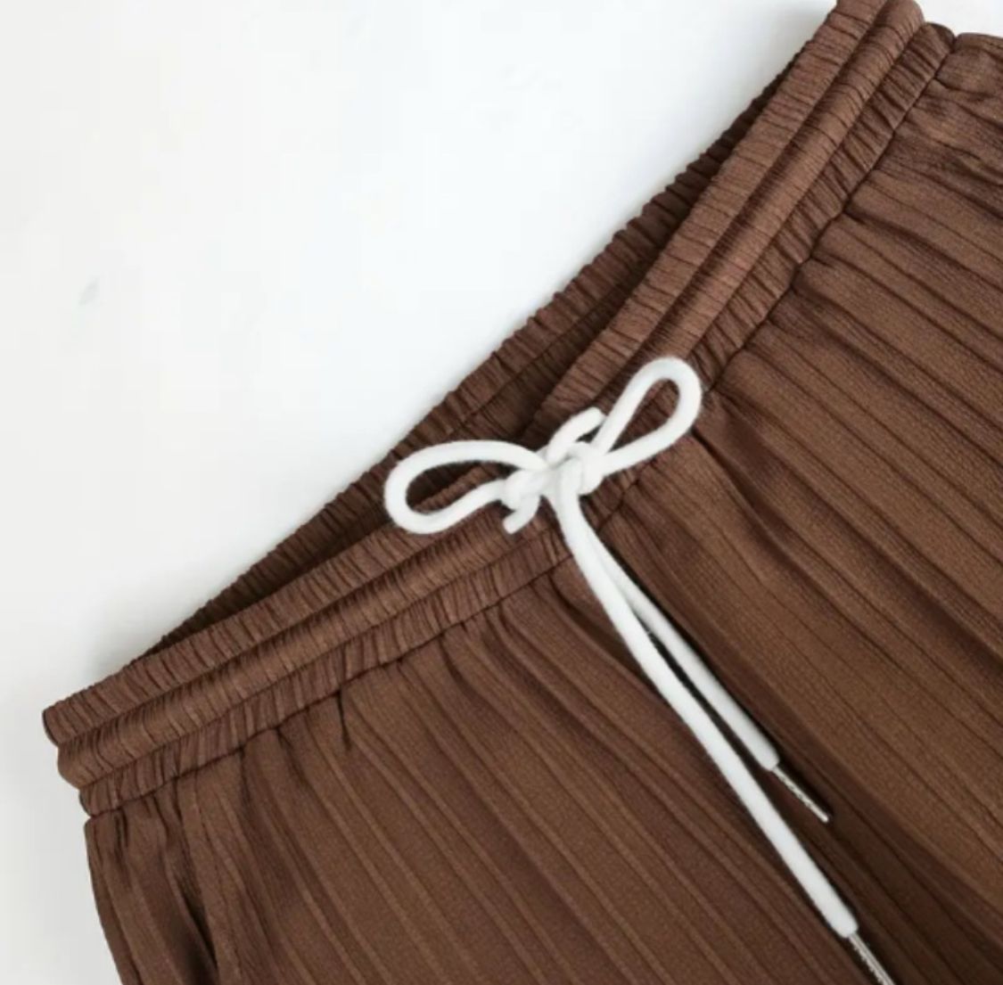 Ideal für entspannte Sommertage, Urlaube oder stilvolle Freizeitmomente. Die strukturierte Oberfläche verleiht dem Set eine moderne Tiefe, während der lockere Schnitt maximale Bewegungsfreiheit bietet. Kombiniert mit einem schlichten T-Shirt und einer Kette, wirkt der Look zugleich lässig und modisch anspruchsvoll.