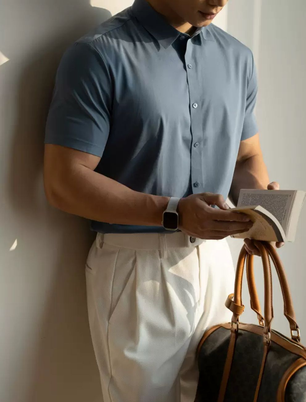 Ideal für Business, Freizeit oder Reisen – in Kombination mit einer Stoffhose oder Chino wird das Eisenweiß Hemd zum stilvollen Allrounder für den modernen Mann.
