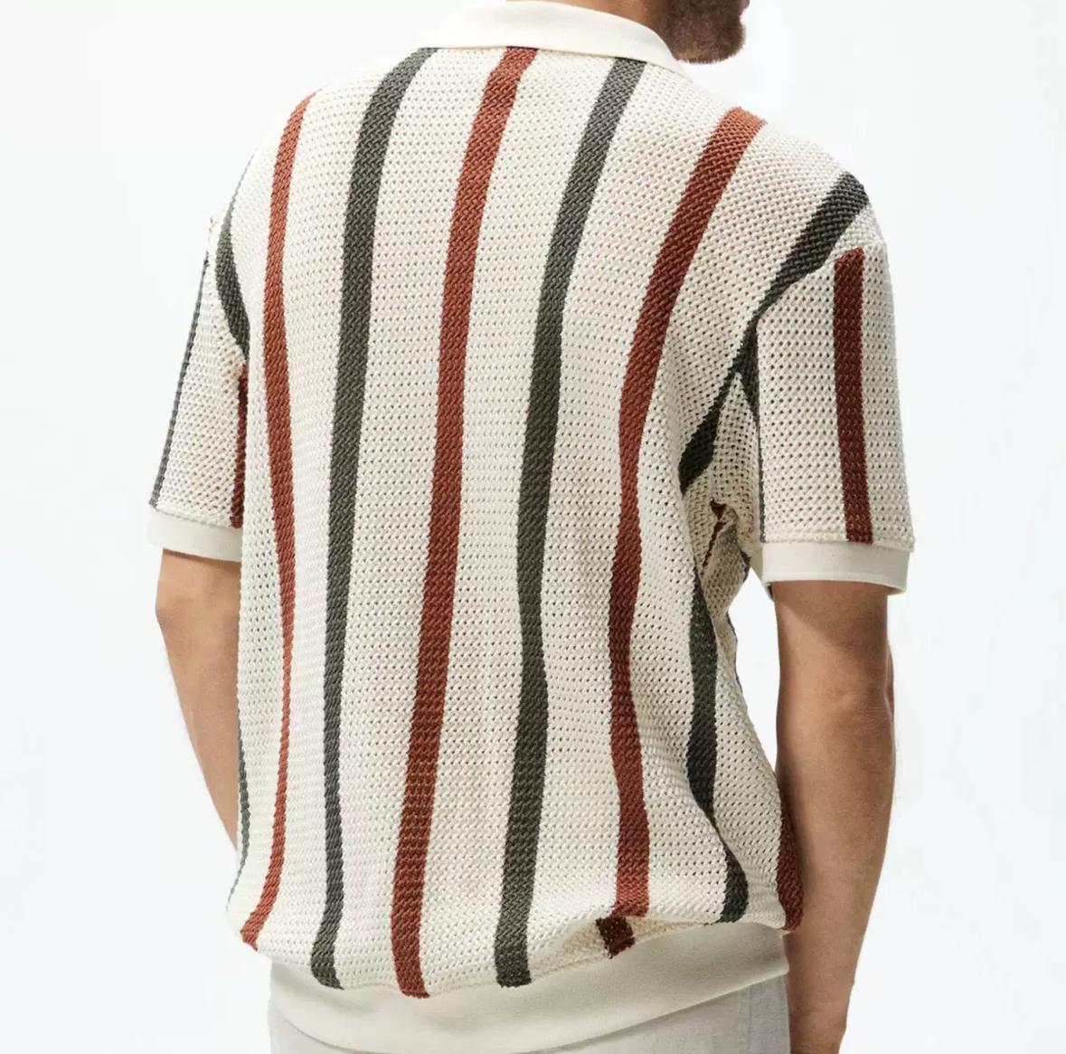 Verleihen Sie Ihrem Sommer-Look Retro-Charme mit modernem Twist – das „Streifenglanz Polo“ ist mehr als nur ein Poloshirt, es ist ein stilistisches Statement. Gefertigt aus atmungsaktivem Strickgewebe sorgt es für optimale Luftzirkulation an warmen Tagen und bietet zugleich höchsten Tragekomfort. Die vertikalen Streifen in warmen Erdtönen verleihen eine streckende Silhouette und lassen Sie automatisch schlanker und größer wirken – ein visueller Vorteil, der ins Auge fällt.
