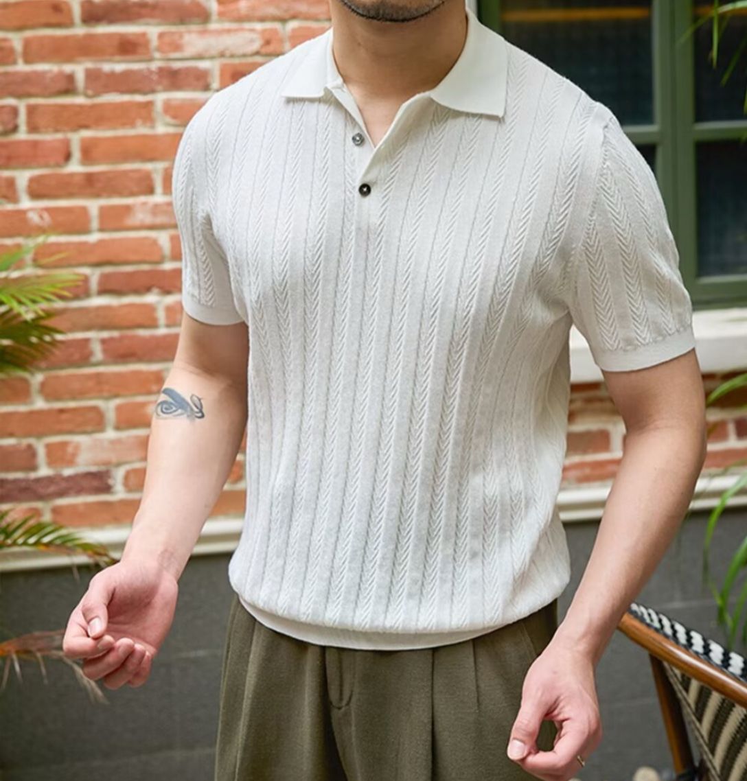 Entdecken Sie mit Marin Blau die perfekte Symbiose aus maritimer Eleganz und sommerlicher Leichtigkeit. Dieses luxuriöse Feinstrick-Polohemd aus hochwertiger Baumwolle überzeugt durch seine fein strukturierte Zopfmuster-Optik, die dem klassischen Polodesign eine stilvolle Tiefe verleiht. Die körpernahe Passform betont die Silhouette, während der weiche Stoff höchsten Tragekomfort garantiert – selbst an warmen Tagen.