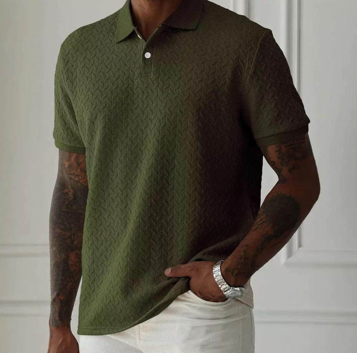 Entdecken Sie das Polohemd „Feinstruktur” – die perfekte Symbiose aus sportlicher Lässigkeit und stilvoller Raffinesse. Mit seinem dezenten, strukturierten Fischgrätmuster und der edlen Sandfarbe hebt es sich dezent von der Masse ab und setzt auf Understatement mit Klasse.