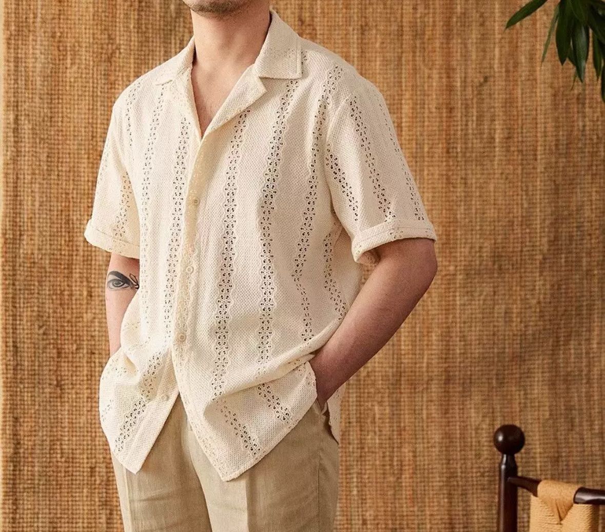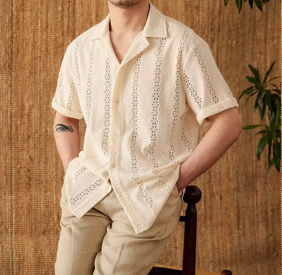 Erleben Sie stilvolle Leichtigkeit mit dem Sommerhemd „Luftspitze” – Ihrem perfekten Begleiter für warme Tage. Dieses Kurzarmhemd vereint klassische Eleganz mit sommerlicher Frische durch sein edles Lochstickmuster und die luftig-leichte Struktur. Der offene Reverskragen, die dezenten Ärmelumschläge und der lockere Schnitt sorgen für einen entspannten, aber stilvollen Auftritt – ob am Strand, auf Reisen oder beim Stadtbummel.