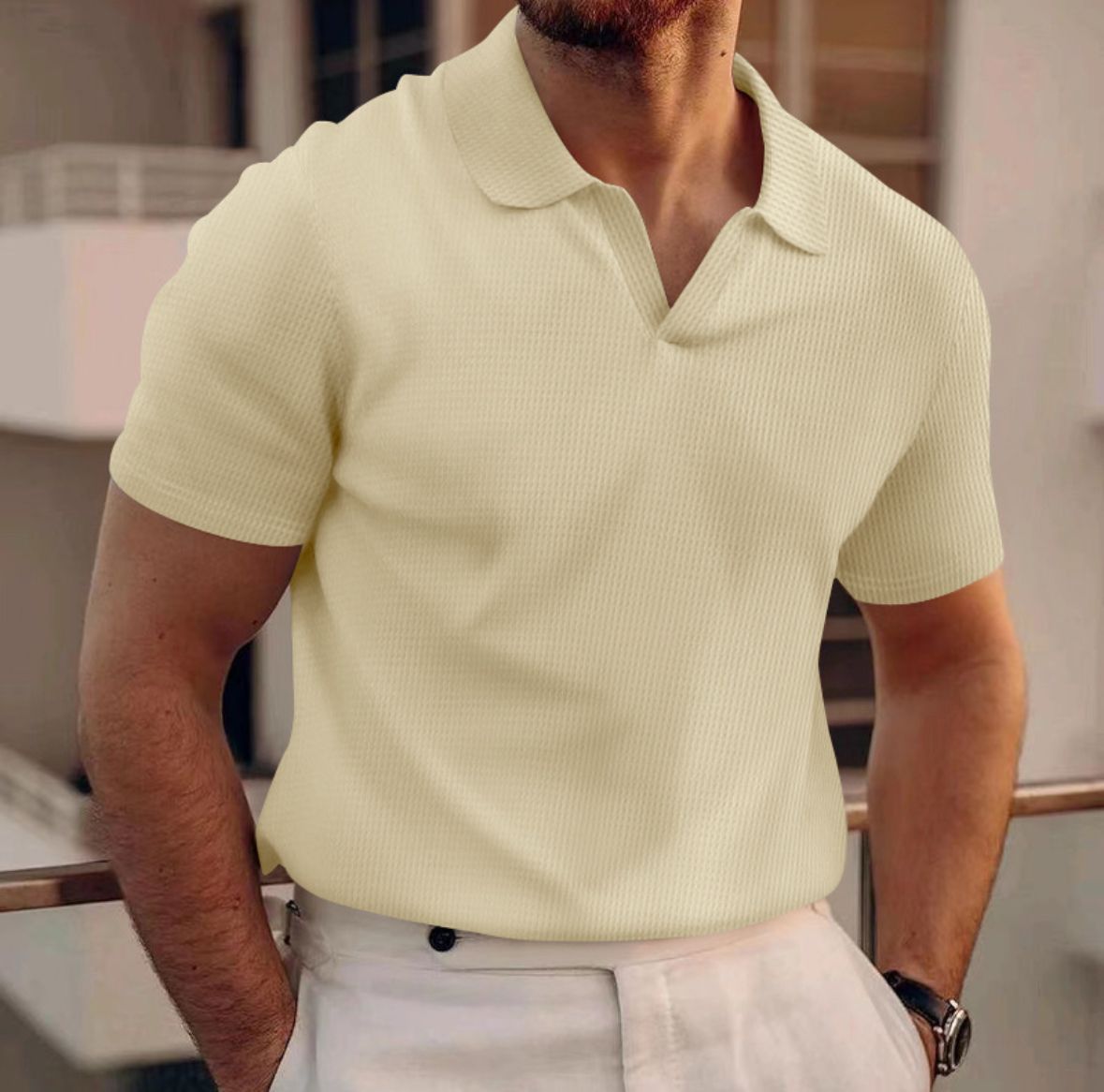 Entdecken Sie mit dem Modell Arvid ein Statement für stilvolle Leichtigkeit: Dieses fein strukturierte Polo-Shirt in edlem Lichtgrau vereint zeitlose Eleganz mit moderner Lässigkeit. Der offene V-Ausschnitt ohne Knopfleiste verleiht dem Look eine besonders entspannte und gleichzeitig raffinierte Note – ideal für warme Tage und stilbewusste Auftritte.