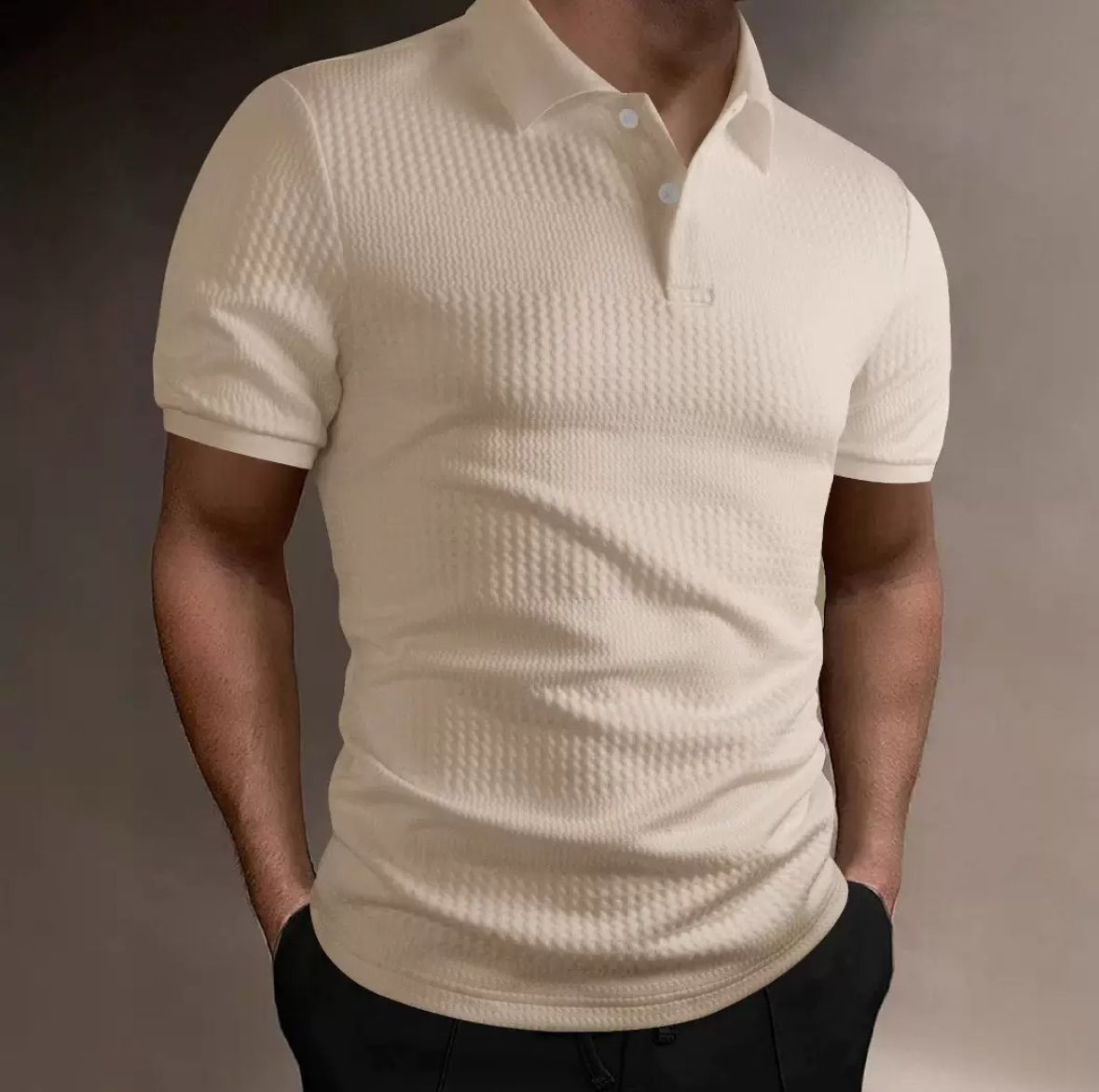 Setzen Sie ein stilvolles Statement mit dem Feinstruktur Polo – Elfenbein. Dieses elegante Poloshirt vereint klassische Zurückhaltung mit moderner Raffinesse. Die fein geprägte Struktur verleiht dem weichen Stoff eine edle Textur, die sowohl optisch als auch haptisch überzeugt. Die schmale Passform betont dezent die Silhouette, während der hochwertige Baumwollmix für angenehmen Tragekomfort sorgt – ideal für warme Tage und gepflegte Auftritte.