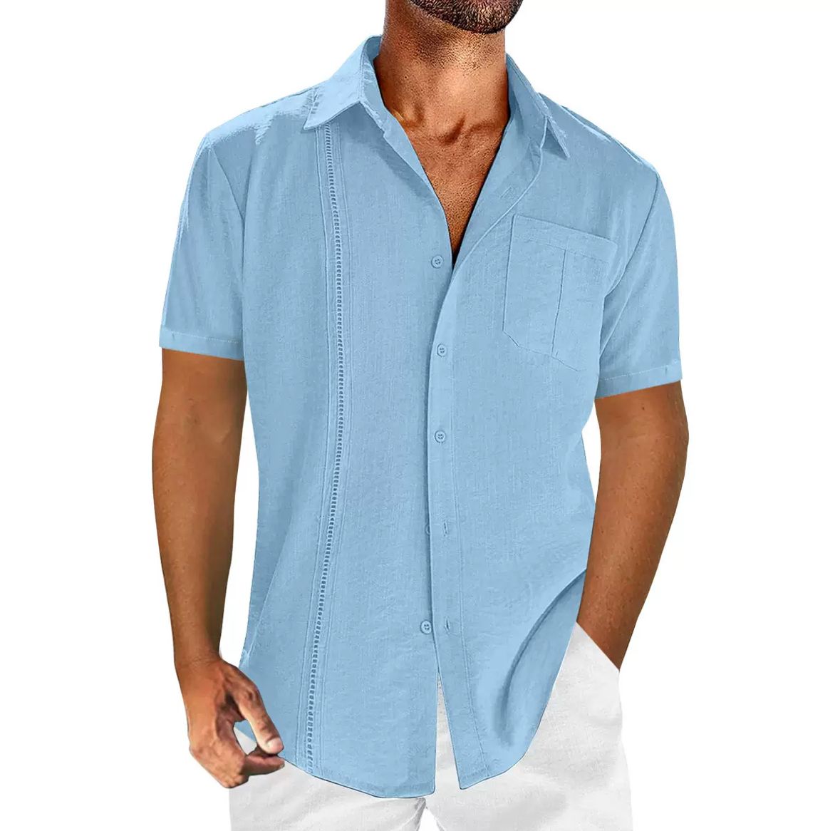 Tauche ein in das Gefühl eines entspannten Sommertages – mit dem „Himmelblick“ Kurzarmhemd für Herren. Das luftige Leinen-Baumwollgemisch sorgt für ein angenehm kühles Tragegefühl, selbst an heißen Tagen. Die hellblaue Farbe erinnert an einen wolkenlosen Himmel und verleiht deinem Look sofort Frische und Stil.