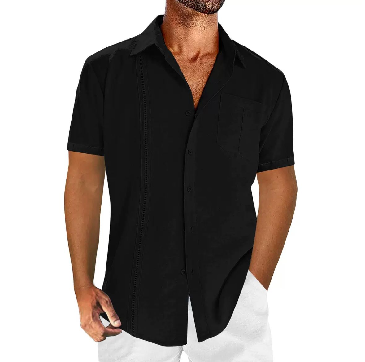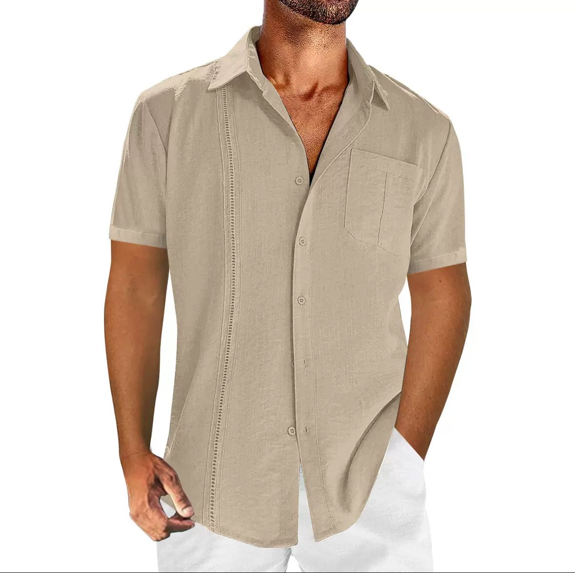 Der klassische Kentkragen, die dezent integrierte Brusttasche und die feinen Zierstreifen entlang der Knopfleiste machen dieses Hemd zu einem stilvollen Begleiter für Freizeit, Urlaub oder einen sommerlichen Stadtbummel. Kombiniert mit hellen Shorts oder Leinenhosen entsteht ein mühelos eleganter Look, der Eindruck hinterlässt.