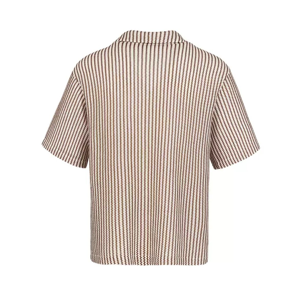 Erleben Sie zeitlosen Stil mit dem Streifenlounge Kurzarmhemd – einem echten Statement für modebewusste Männer. Das Hemd vereint lässigen Schnitt mit einem markanten Streifenmuster in Braun und Weiß, das subtil an den Retro-Stil der 60er erinnert. Die weich strukturierte Stoffqualität bietet nicht nur hohen Tragekomfort, sondern auch Atmungsaktivität – ideal für warme Tage und stilvolle Auftritte.