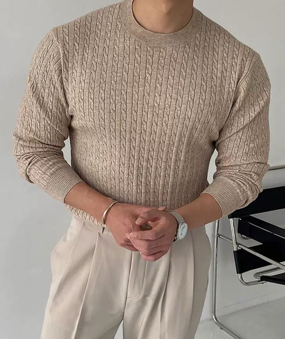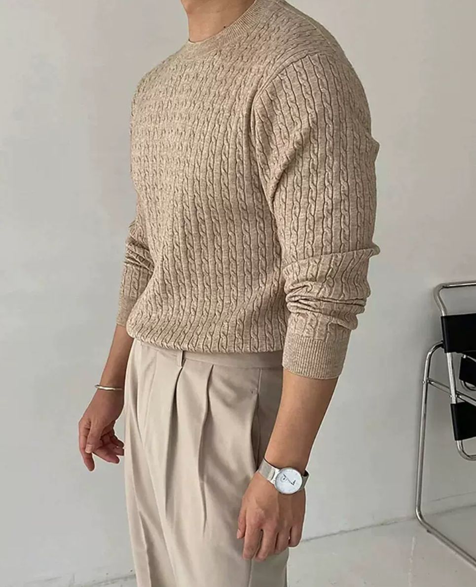 Sandfein Struktur“ – Herrenpullover in Zopfmuster