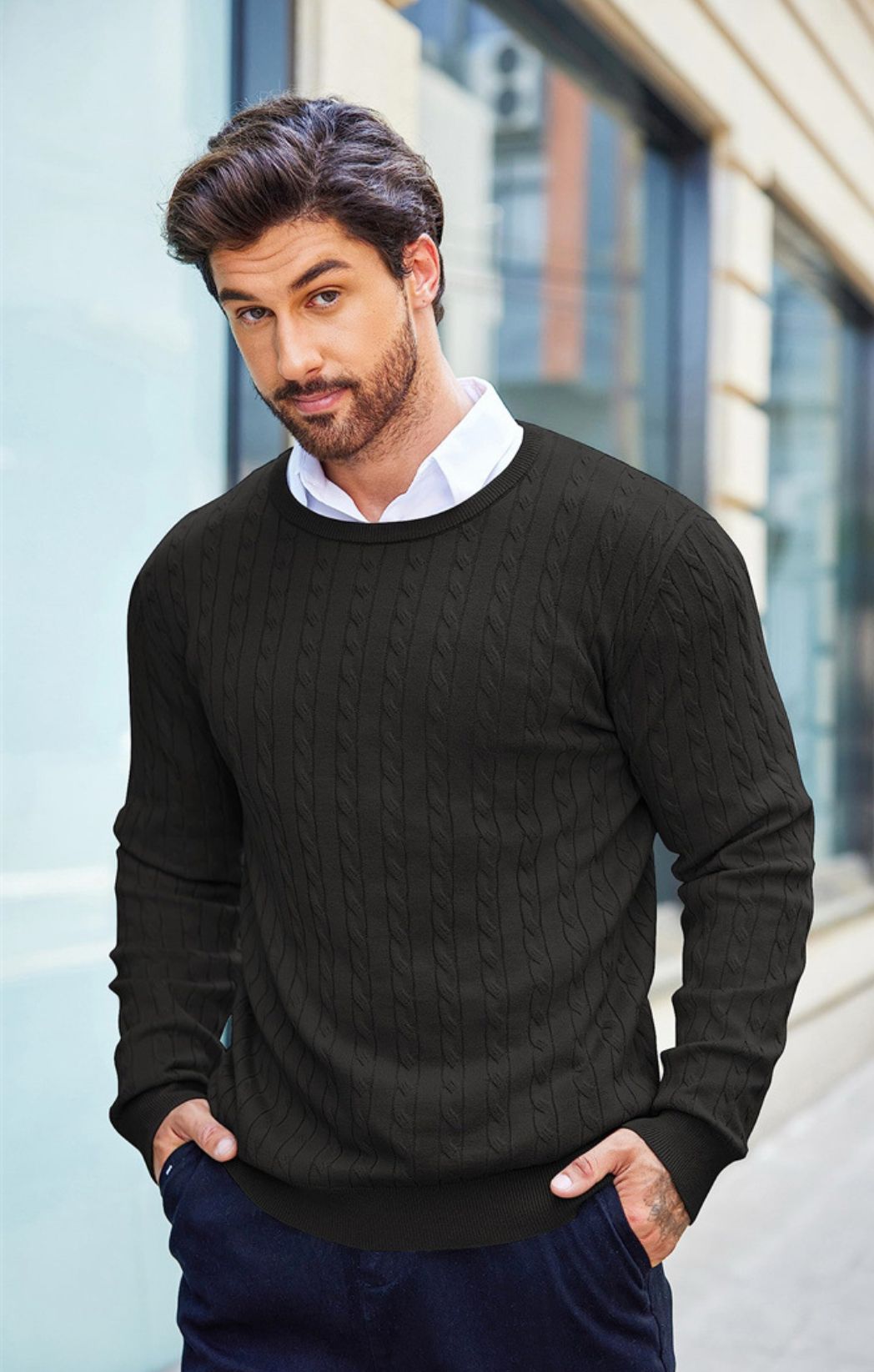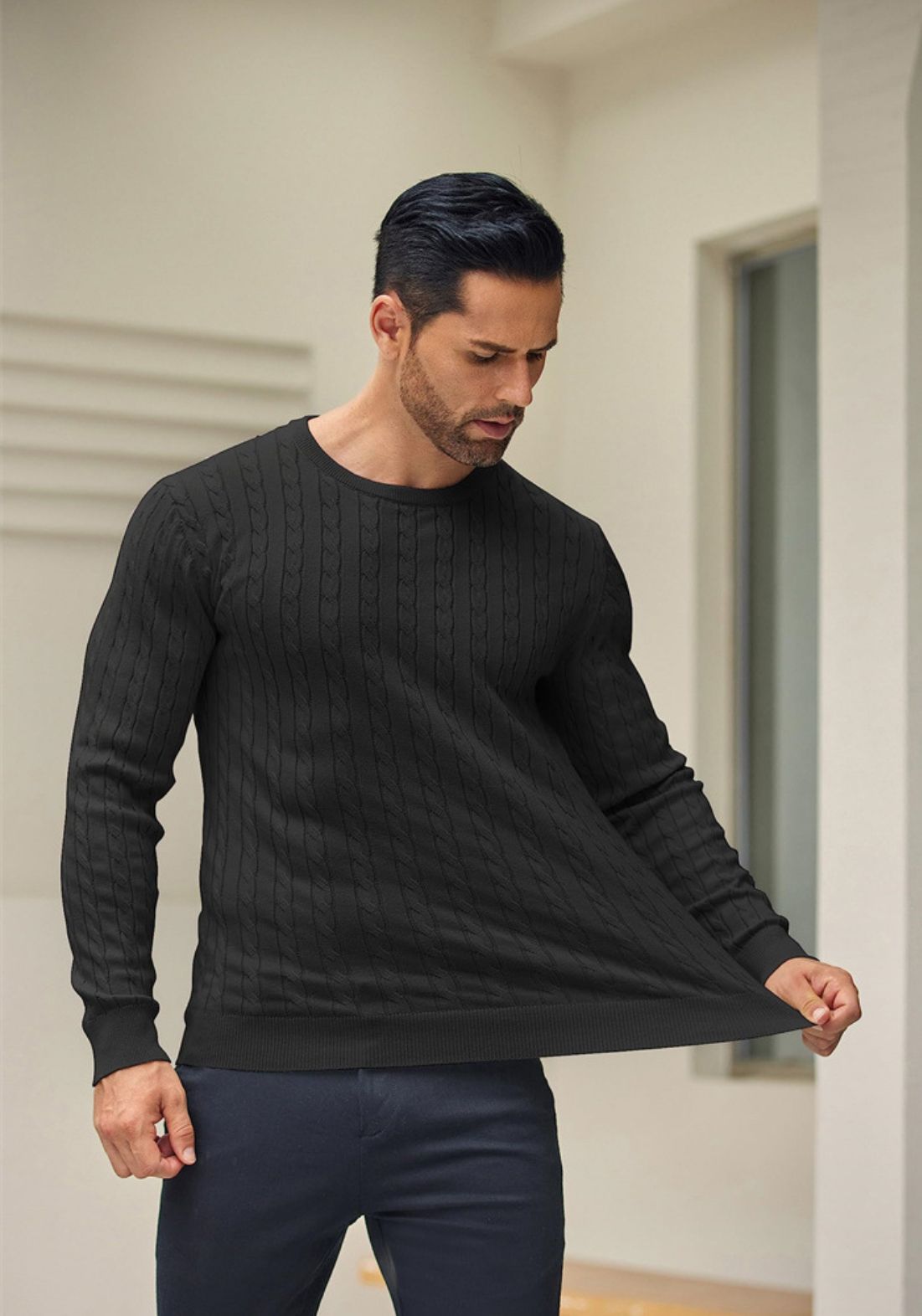 Entdecken Sie Schwarzstrick Eleganz – den Pullover für Männer, die Stil, Komfort und Klasse vereinen möchten. Gefertigt aus einem weichen, atmungsaktiven Baumwollmix, sorgt dieser schwarze Strickpullover mit feinem Zopfmuster für einen edlen Auftritt in jeder Alltagssituation.
