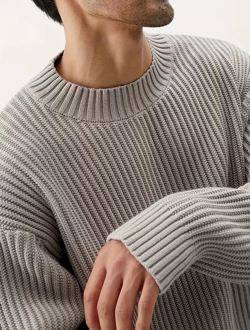 Die moderne Oversize-Passform mit subtilen Designdetails wie dem versetzten Strickmuster verleiht dem Pullover eine exklusive Note – perfekt für Männer, die Wert auf Stil und Charakter legen. Ob für den Alltag, das Büro oder entspannte Wochenenden – dieser Pullover passt sich jedem Moment an und unterstreicht Ihre Persönlichkeit.