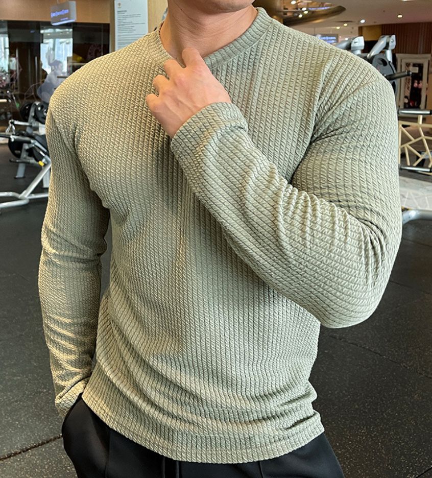 Erlebe die neue Definition von maskuliner Eleganz – mit Strukturweiß, dem Pullover, der Stil und Komfort meisterhaft vereint. Das markante 3D-Strickmuster sorgt nicht nur für einen einzigartigen Look, sondern unterstreicht auch Deine athletische Silhouette – ob im Gym, in der City oder beim Casual Dinner.