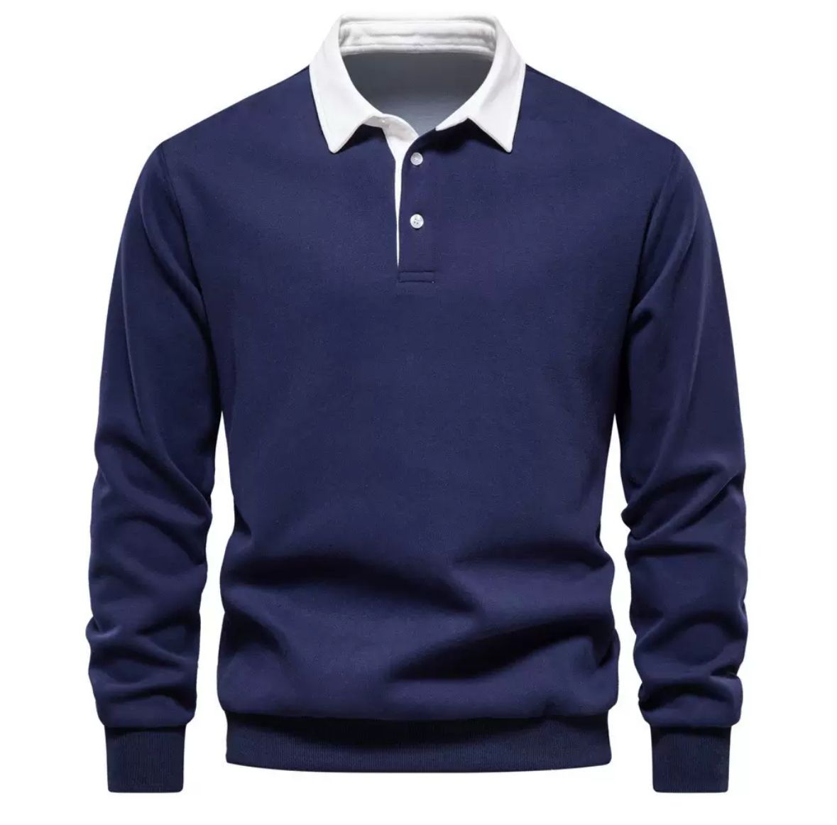 Erleben Sie Stil, Komfort und Klasse in einem – mit dem Langarm-Poloshirt „Mitternachtsklasse“. Dieses Shirt vereint sportliche Eleganz mit einem Hauch britischer Noblesse. Der tiefblaue Farbton strahlt Ruhe und Autorität aus, während der kontrastierende weiße Kragen einen markanten Akzent setzt.
