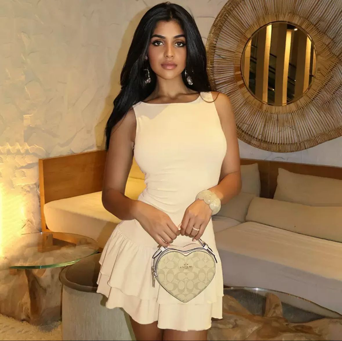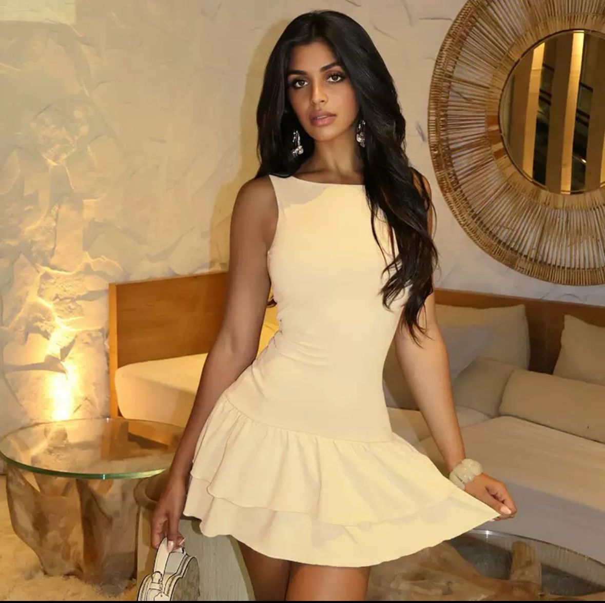 Verleihe deinem Look zeitlose Eleganz mit unserem Elegance Charm Minikleid in edlem Creme. Dieses figurschmeichelnde Kleid überzeugt mit einem schlichten, ärmellosen Oberteil und einem femininen, doppellagigen Rüschenrock, der bei jeder Bewegung verspielt mitschwingt. Der hochwertige Stoff sorgt für einen angenehmen Tragekomfort, während der taillierte Schnitt deine Silhouette perfekt in Szene setzt.