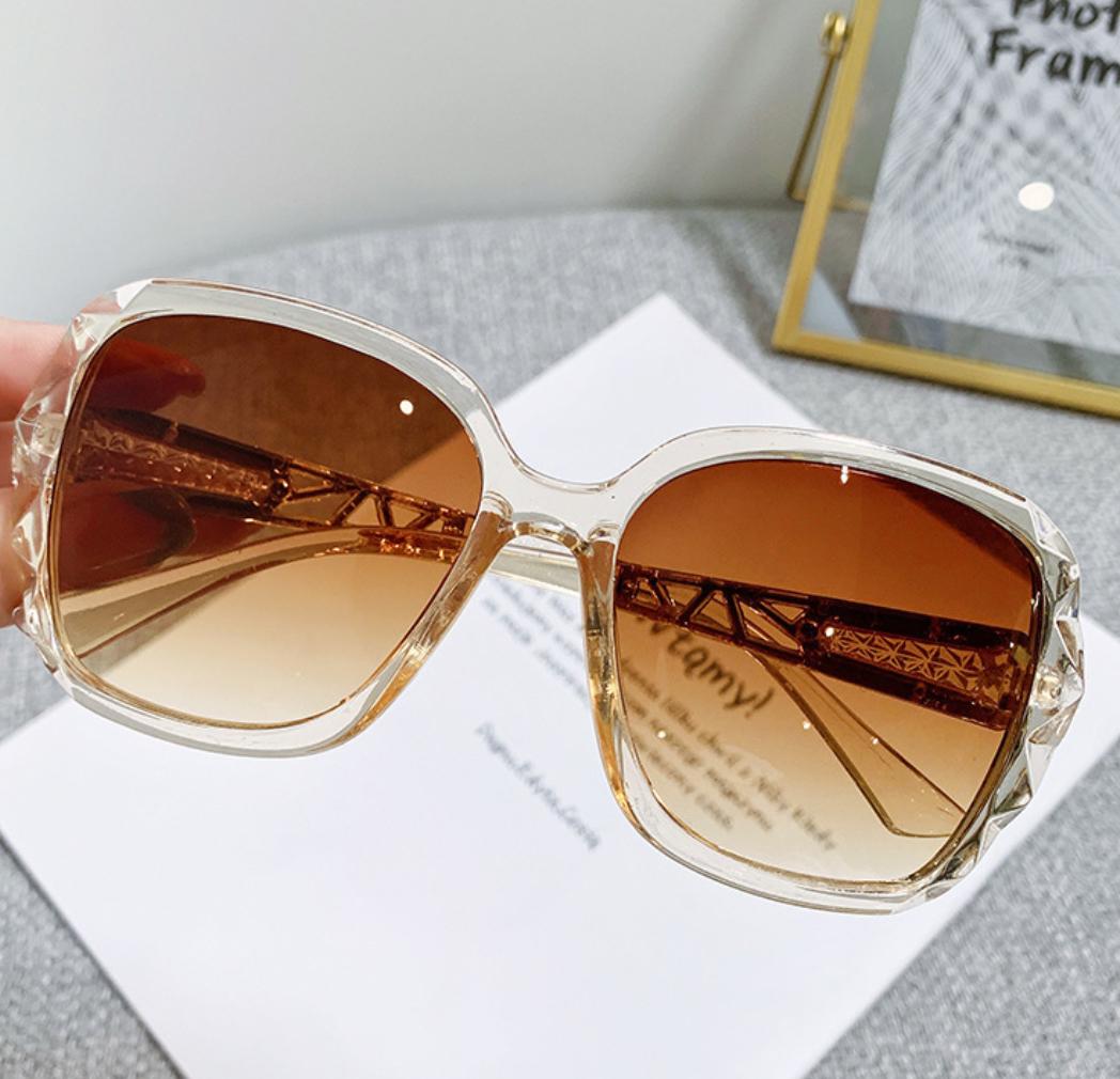 Verleihen Sie Ihrem Look einen Hauch von Glamour mit der Sonnenglanz Diva. Diese luxuriöse Oversize-Sonnenbrille überzeugt durch ihre edel facettierten Ränder und warm getönten Verlaufsgläser, die nicht nur stilvoll aussehen, sondern auch zuverlässigen UV-Schutz bieten. Der transparente Rahmen mit golden schimmernden Details und kunstvoll verzierten Bügeln unterstreicht Ihre Individualität und setzt modische Statements – perfekt für sonnige Tage, Urlaubsstimmung und selbstbewusste Auftritte.