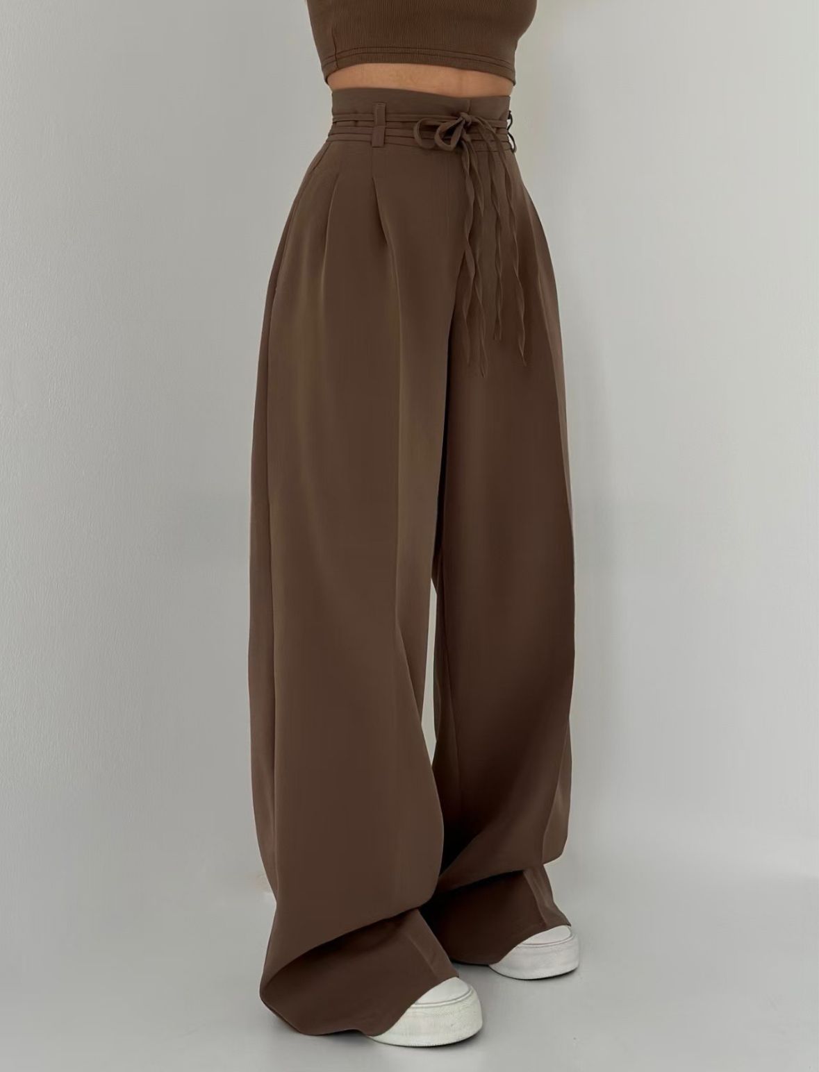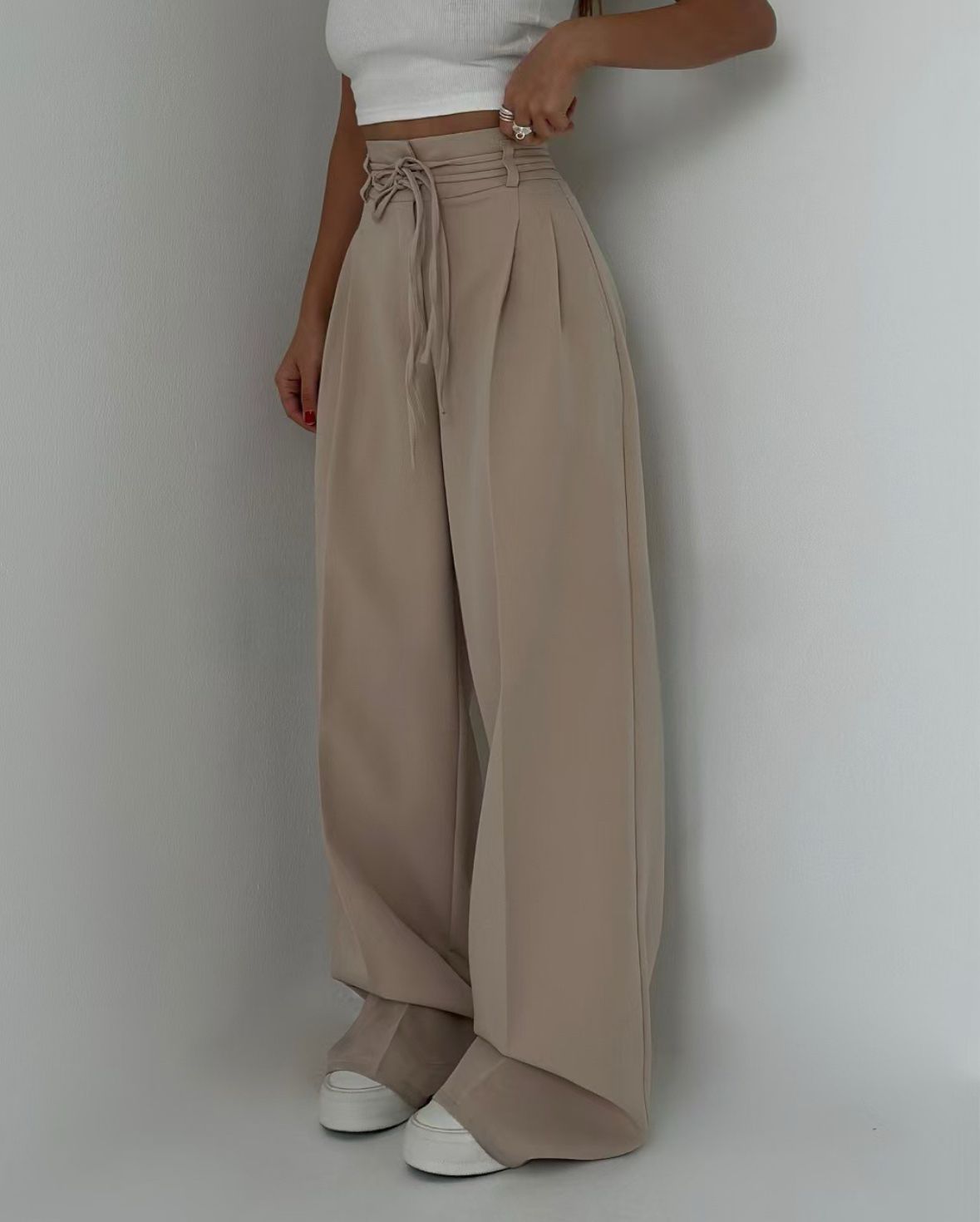 Erlebe zeitlose Eleganz mit unserer LANA High-Waist Palazzo Pants in klassischem Weiß. Diese Hose vereint minimalistisches Design mit maximalem Komfort: Der hohe Taillenbund mit dekorativer Schnürung schmeichelt der Figur, während der fließende Stoff und die weite Beinform eine moderne Silhouette schaffen. Perfekt kombinierbar mit Croptops, Blusen oder Blazern – ob im Alltag, im Büro oder beim Ausgehen. Die hochwertige Verarbeitung und der trendige Schnitt machen LANA zu einem Must-have für jede stilbewusste Garderobe.