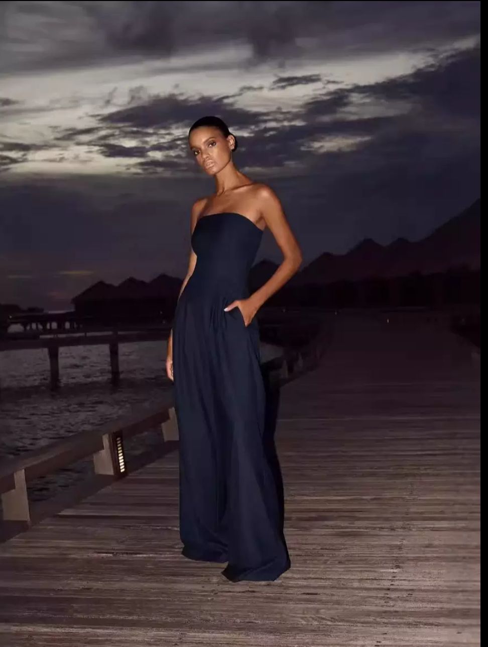 Setze ein stilvolles Statement mit unserem eleganten Bandeau-Jumpsuit in klassischem Schwarz! Dieses modische Must-have vereint Komfort mit zeitloser Eleganz und ist die perfekte Wahl für besondere Anlässe, Dinner-Dates oder stilvolle Alltagslooks.