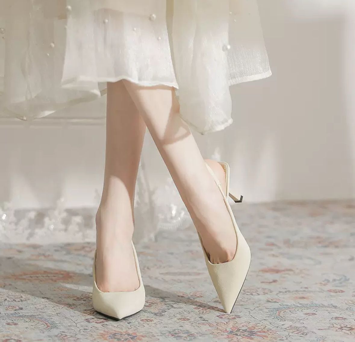 Verleihe deinem Look einen Hauch von Eleganz mit unseren Eleganza Slingback-Pumps in edlem Creme-Ton. Das feminine Design mit spitz zulaufender Kappe und schmalem, circa 7 cm hohem Absatz sorgt für eine anmutige Silhouette – perfekt für besondere Anlässe oder stilvolle Alltagsmomente.
