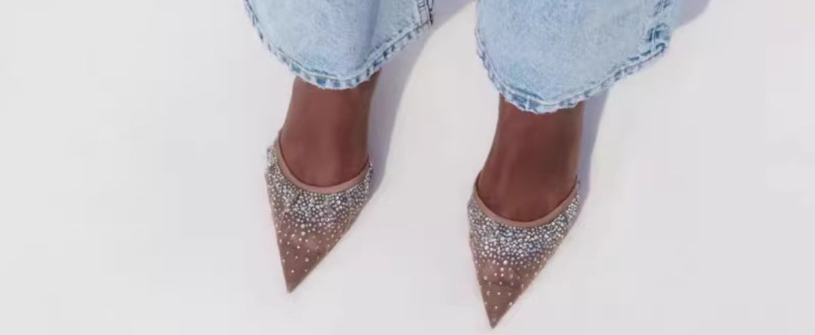 Verleihe deinem Look das gewisse Etwas mit unseren Glamour Sparkle Slingback Heels. Diese eleganten Slingback-Pumps in einem zarten Nude-Ton kombinieren feinste Netzoptik mit funkelnden Strasssteinen für einen stilvollen und femininen Auftritt. Die spitz zulaufende Silhouette und der grazile Stiletto-Absatz zaubern eine schlanke Silhouette und ergänzen sowohl festliche Outfits als auch moderne Abendgarderobe perfekt.