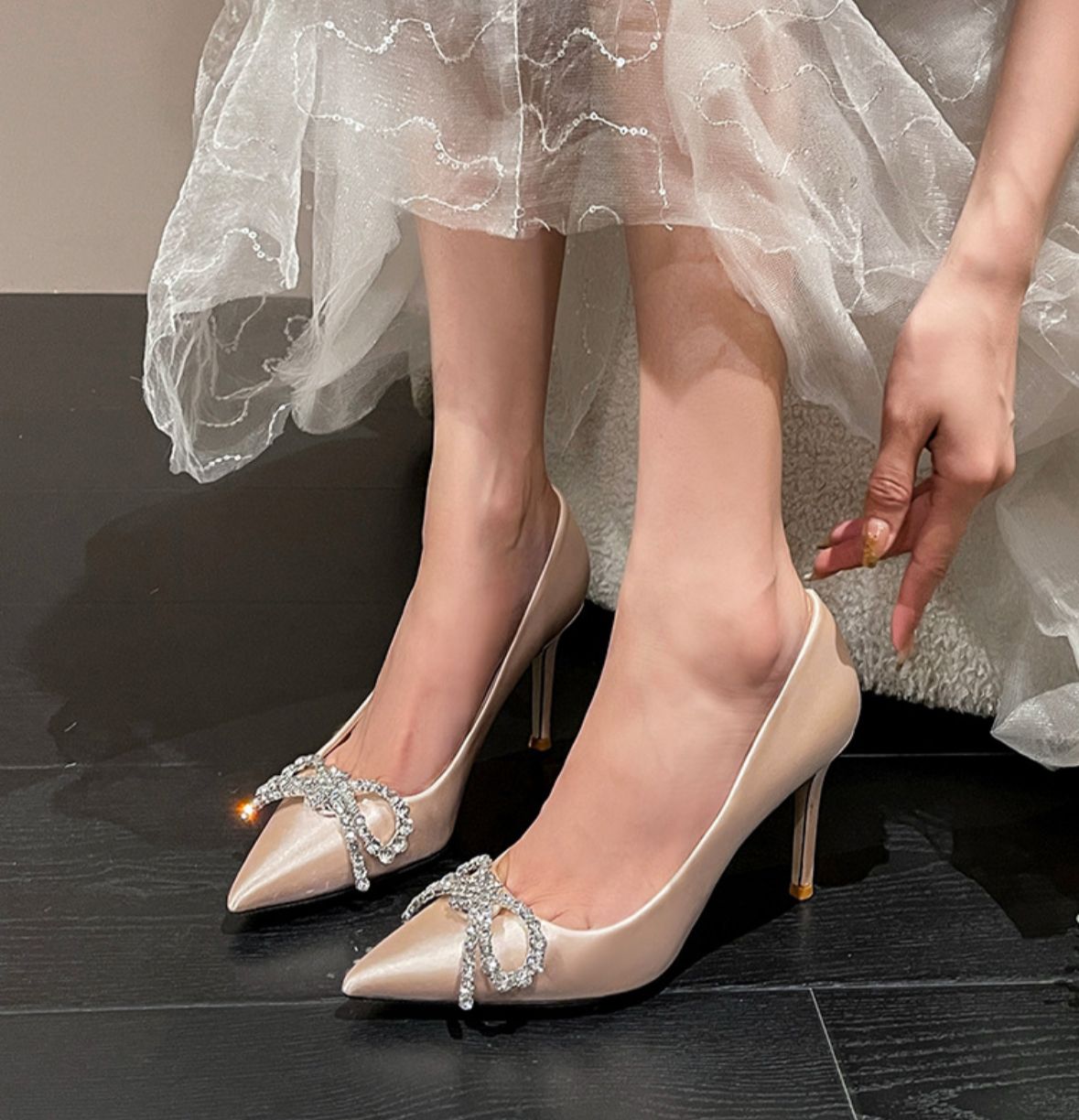Das weiche Innenfutter garantiert einen angenehmen Tragekomfort – selbst nach stundenlangem Feiern. Die schmale, stabile Stiletto-Absatzform streckt optisch das Bein und passt perfekt zu jedem Brautkleid oder festlichen Outfit.