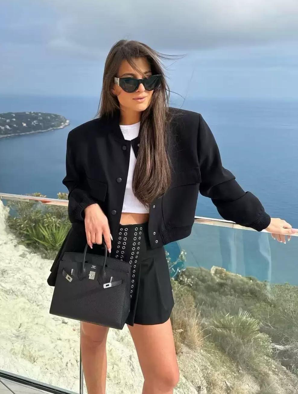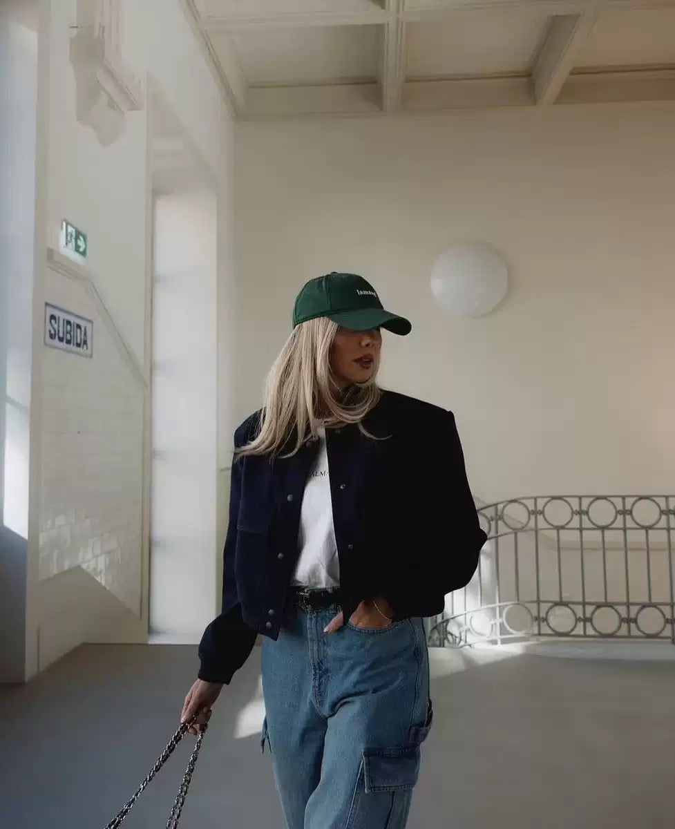 Styling-Tipp: Kombiniere es mit einer High-Waist-Hose, schmalen Sonnenbrillen und einer strukturierten Schultertasche für den perfekten Streetstyle-Look.
