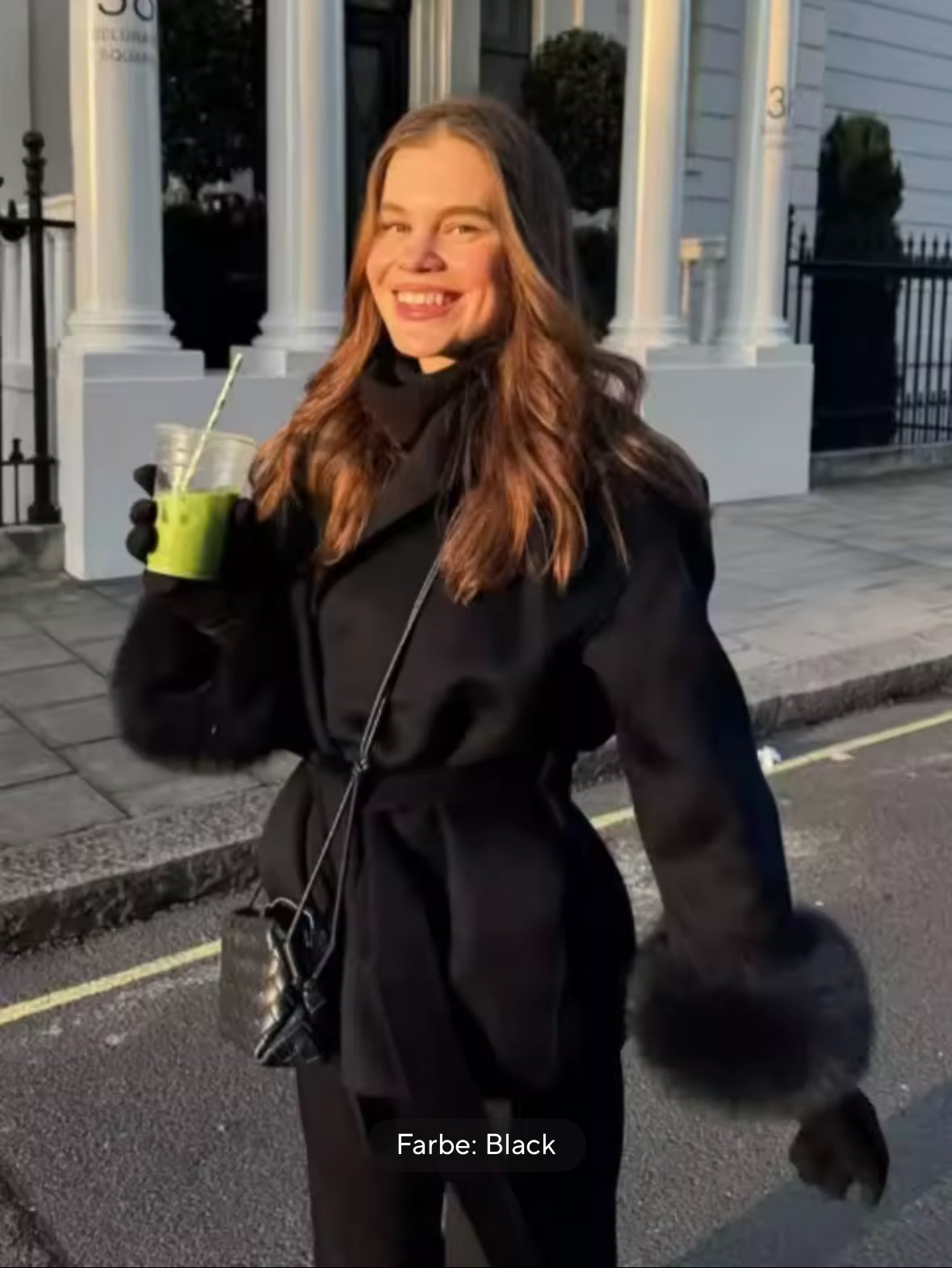 Erlebe pure Eleganz mit unserem Welalux Premium Wollmantel in edlem Grau. Dieses exklusive Modell vereint klassisches Design, modernen Komfort und einen Hauch von Luxus. Der Mantel besticht durch seine hochwertige Wollmischung und die auffälligen Fuchspelz-Details an den Ärmeln, die für einen stilvollen und warmen Look sorgen – perfekt für Herbst und Winter.